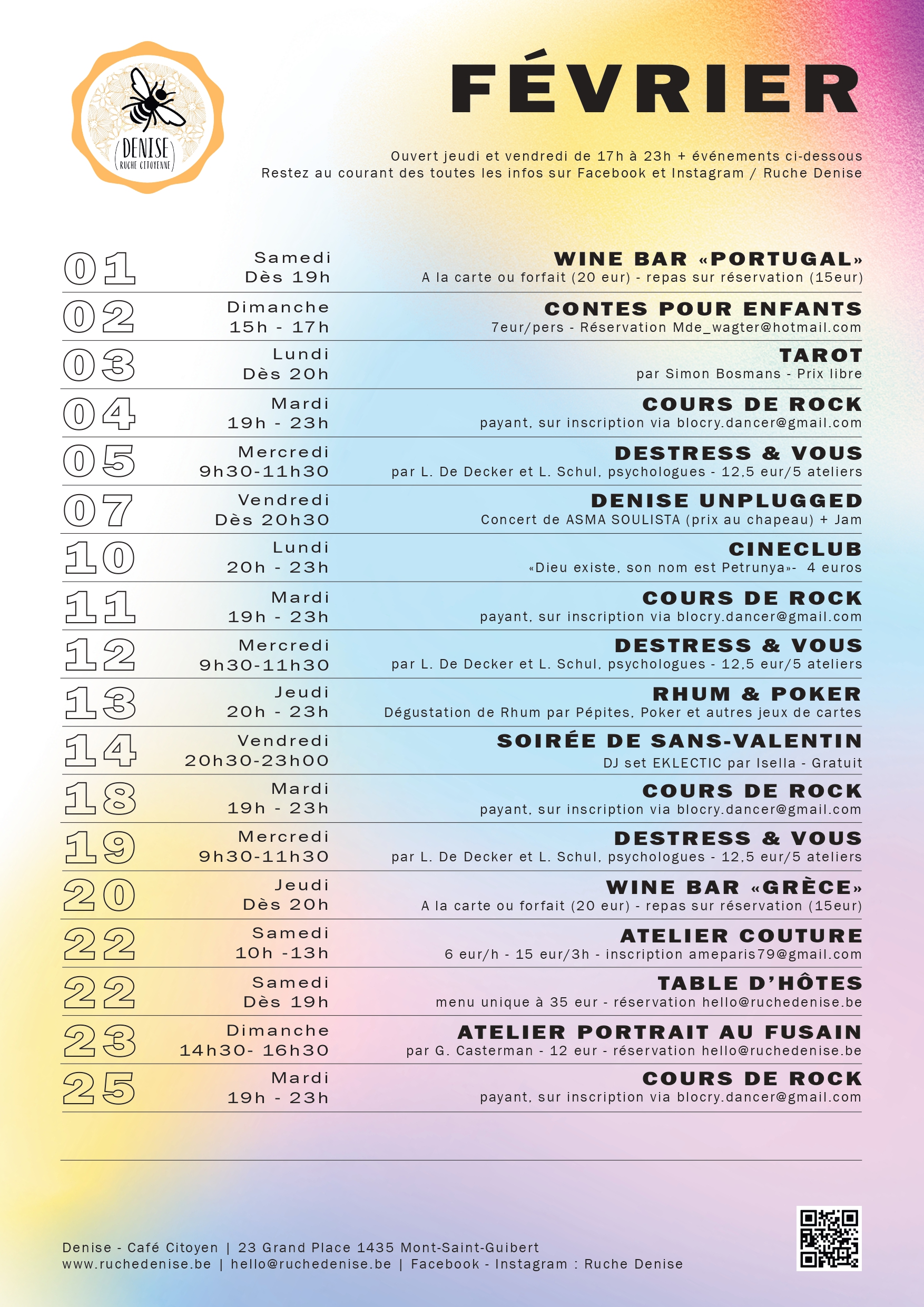 Voici toutes nos activités pour le mois de février. A vos agendas !